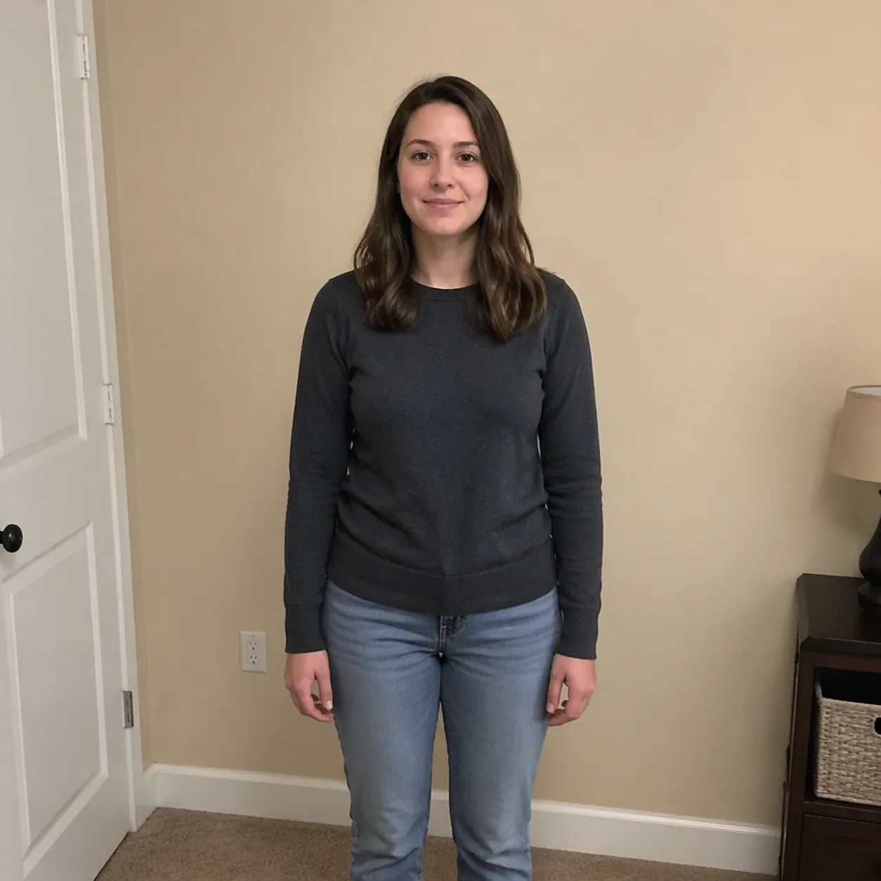 A woman standing in a room.Now here is the same idea with the eight slots filled in:
